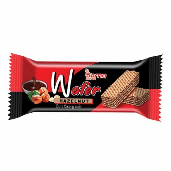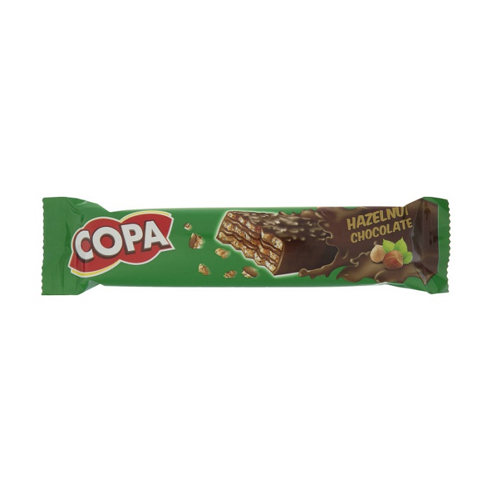 ویفر شیری فندقی با تکه های فندق و روکش شکلات شیری تریپرز