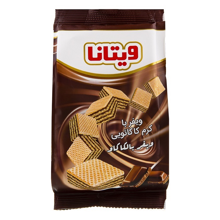 ویفر با کرم کاکائویی با طعم فندق و کارامل طعم وانیل و برنج حجیم شده نیکا بایت ویتانا