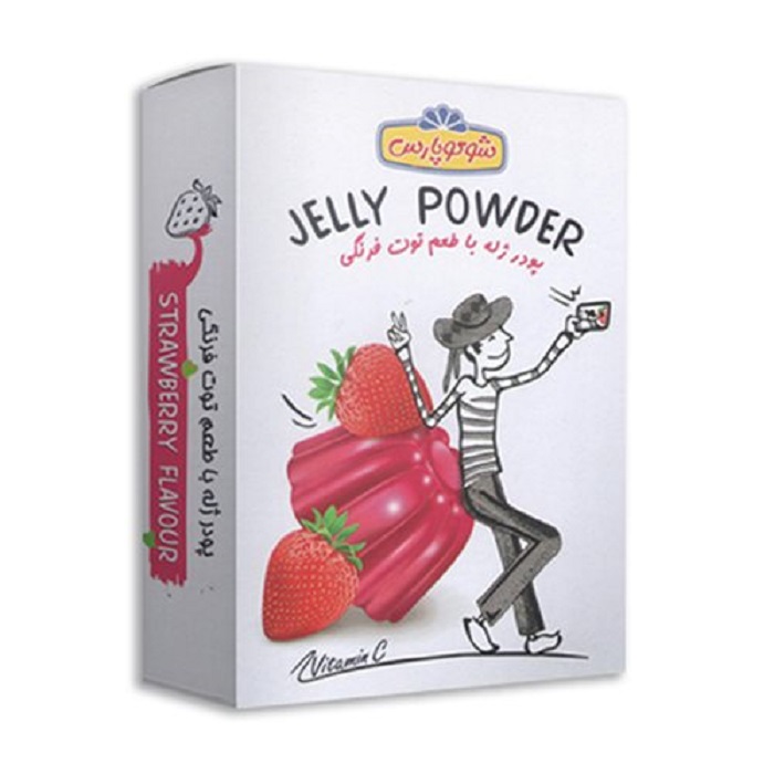 پودر ژله با طعم توت فرنگی شوکو پارس ( کالری برای ۱ قاشق غذاخوری آماده است )
