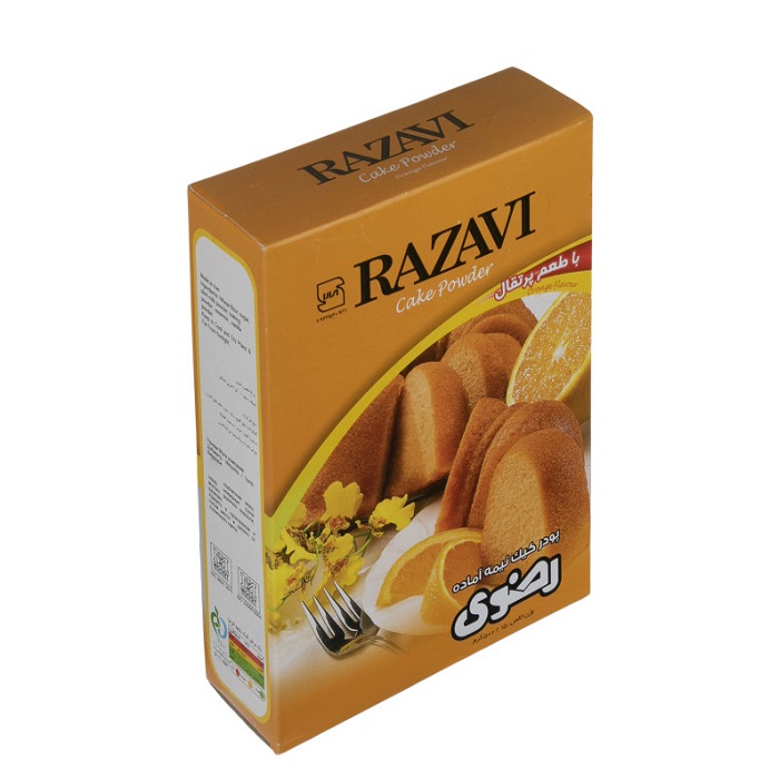 پودر کیک رضوی با طعم پرتقال ( کالری برای برش کیک آماده است )