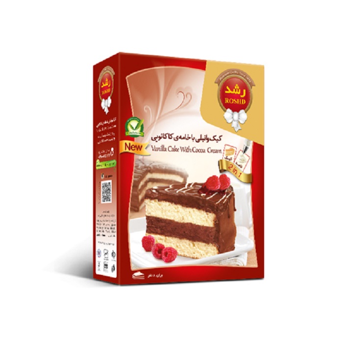 پودر کیک وانیلی با خامه کاکائویی رشد ( کالری برای برش کیک آماده است )