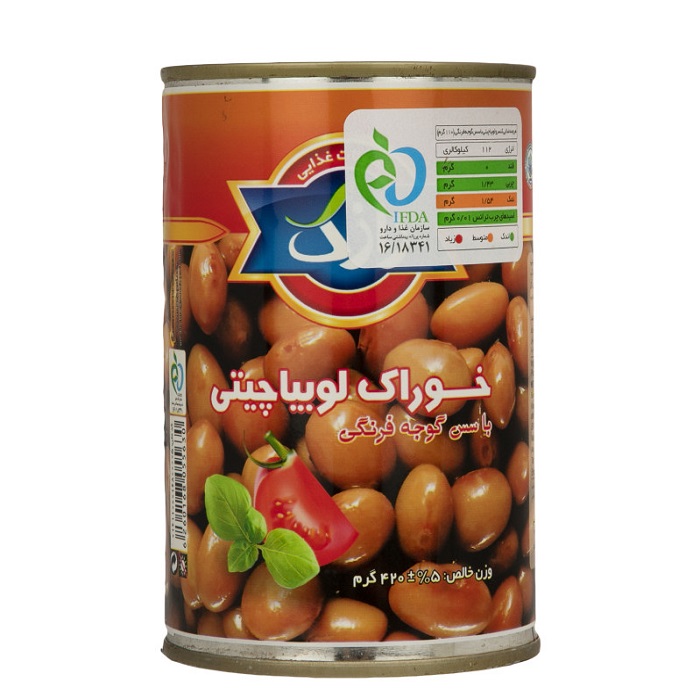 کنسرو خوراک لوبیا چیتی در سس گوجه فرنگی سالمزی
