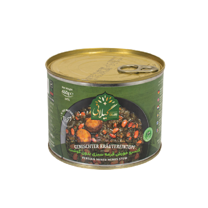 کنسرو خورشت قرمه سبزی بدون گوشت گیلانی