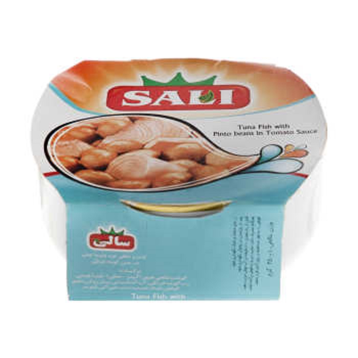 کنسرو ماهی تون و لوبیا چیتی در سس گوجه فرنگی سالی