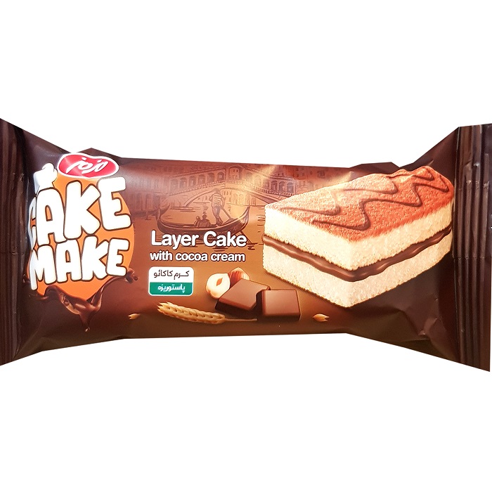 کیک دولایه اسفنجی با مغزی کرم کاکائویی مزمز