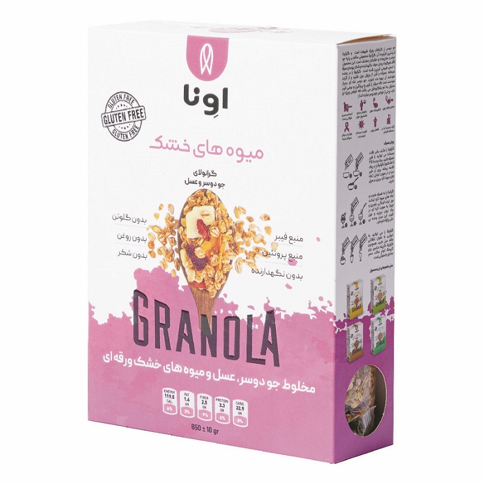 گرانولا جودوسر و عسل با میوههای خشک بدون گلوتن اونا