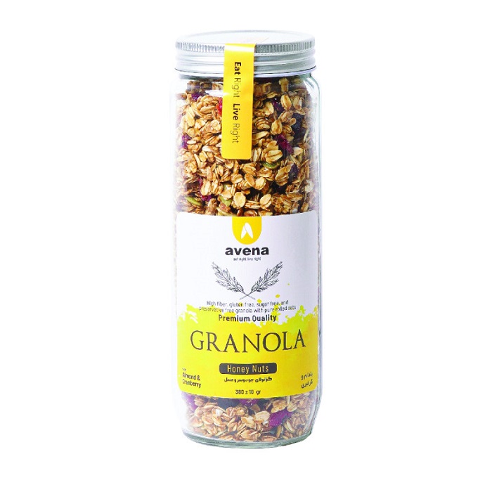 گرانولا جودوسر و عسل با مغز بادام و کرنبری و تخم کدو اونا