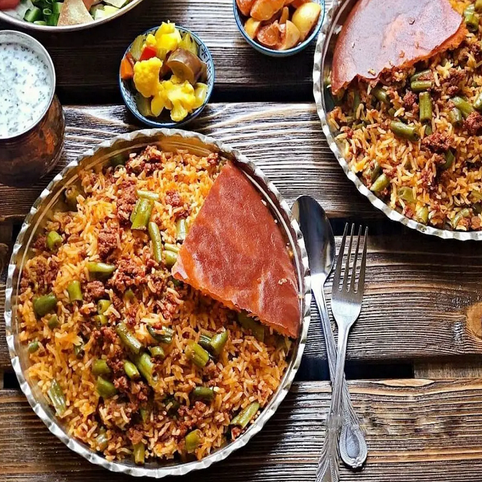 لوبیا پلو با گوشت چرخ کرده